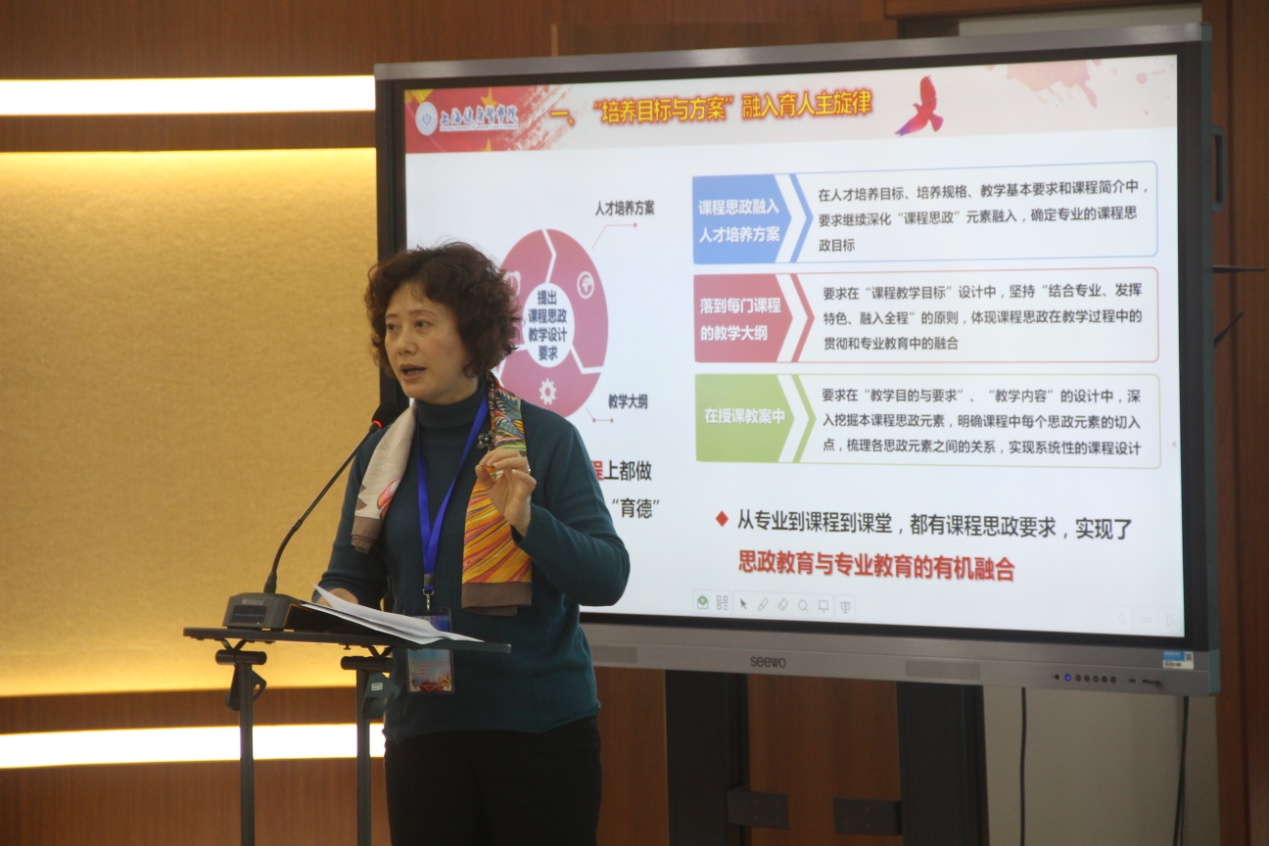 在实践教学经验交流阶段,马克思主义学院不同教研室都结合本学科的特点进行了成果分享。“思想道德修养与法律基础”教研室的江慧英老师以“医路引领 医路修德 医路前行”为主题,具体阐述了她们所开展的教学实践活动,从“走进学生”、“走进专业”等不同的层面构建“三位一体”的实践教学体系。通过“课前演讲”、“专家进课堂”和“志愿者服务”等具体形式深入展开,取得了良好的效果。“毛泽东思想和中国特色社会主义理论体系概论”教研室的马小红老师在交流中指出,她们按照“2+x”的模式进行,“2”主要是指,必须结合以党和国家重大事件为依托,开展各种主题活动,以及让学生完成社会实践手册作业。“x”就是教师根据自身、学校和学生的实际,选择具体的形式开展实践教学活动,学生反映良好。“马克思主义基本原理概论”教研室的陈焱老师所谈到的实践活动则是以读书会的形式开展,诵读马克思主义人文经典。读书会成员从授课班级的学生中选取,在组织上作为有一定思想与理论深度的马克思主义类学生社团为定位,由学院教师指导,学生自行策划、组织和管理,读书效果得到学生们充分的认同。马克思主义学院副院长曹月柱则代表“中国近现代史纲要”教研室讲述了课程实践教学探索,以“走读上海”为主题,依托上海这座历史文化名城丰厚的历史积淀,结合“中国近现代史纲要”的教学目标和教学内容,初步划分为四个具有代表性的历史时期:十里洋场、红色地标、抗战记忆和伟人足迹具体展开,成效明显。最后,与会专家对不同教研室的实践经验汇报进行了点评和指导。他们对不同教研室的实践教学改革和探索给予了充分地肯定,并明确指出:对于实践探索过程中的成果要认真总结和提炼,把理论与实践紧密结合起来,要有实践意识、学科意识和研究意识,应形成长效机制,制定相关的制度,集中多方力量,调动多种积极因素,明确针对性,抓住方向性,重视实效性。