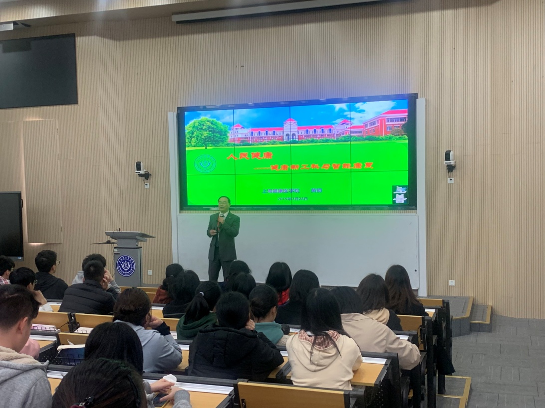 3月28日下午,人民健康课在南苑W100沉浸式教室开讲,黄钢校长为18级数据科学与大数据技术专业、18级康复治疗专业、18级康复物理治疗专业的学生带来了“人民健康——健康新工科与智能康复”的精彩授课。