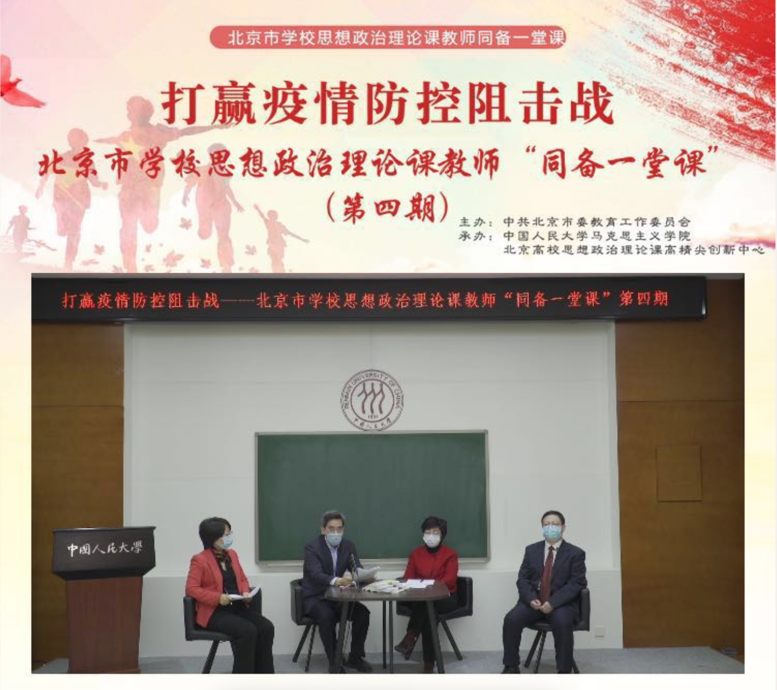 为进一步学习各地开展教学准备的经验,21日上午10点,马克思主义学院全体老师观看由北京高校思想政治理论课高精尖创新中心开展的思想政治理论课教师“同备一堂课”活动,邀请了清华大学马克思主义学院艾四林教授、北京大学马克思主义学院孙蚌珠教授、中国人民大学马克思主义学院何虎生教授和中央财经大学马克思主义学院冯秀军教授进行了集体备课活动,马克思主义学院教师认真观看直播活动并组织在线讨论。