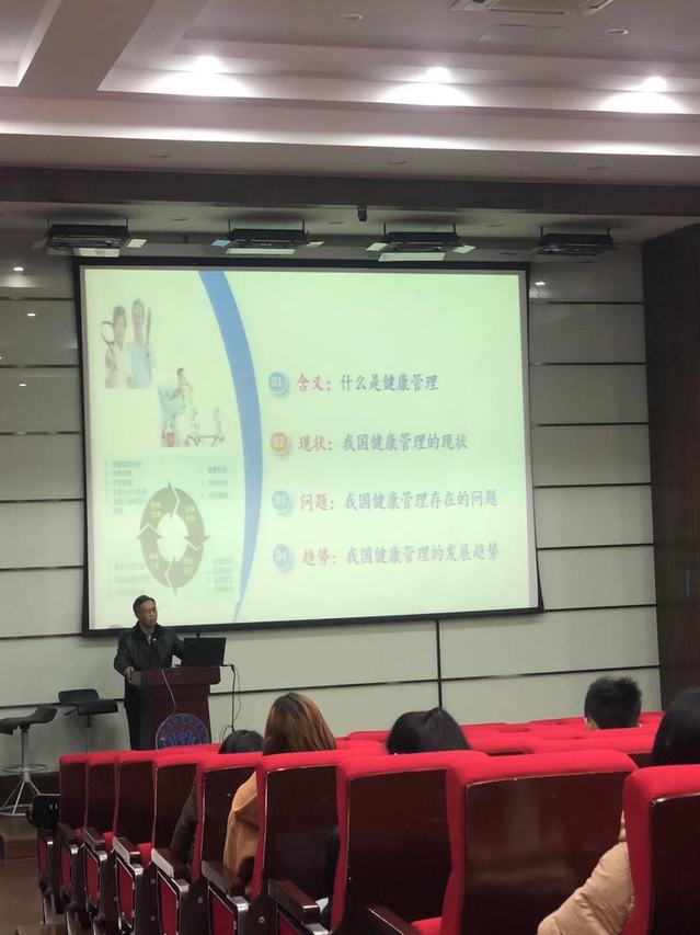 12月24日下午,在南苑E100报告厅人民健康课开讲。由学校发展规划处处长钱芝网教授主讲“我国健康管理的现状、存在问题与发展趋势”,2018级健康管理与服务专业学生参加。