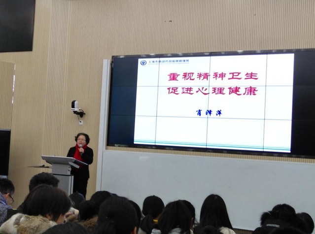 2018年1月4日下午14:40,人民健康思政选修课第十课在上海健康医学院南苑W100沉浸式教室顺利开讲,上海食药监局副局长、博士生导师肖泽萍教授为同学们带来了“重视精神卫生,促进心理健康”的专题讲授。