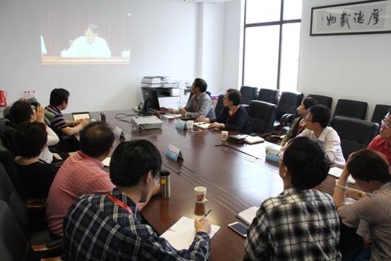 5月14日下午,教育部高校思想政治理论课2018年版教材使用培训班开班,我校在马克思主义学院502会议室设立分会场。校党委书记郑沈芳、教务处副处长蒋淑敏、马克思主义学院党政负责人及全体教师通过网络直播认真收看了开班仪式。
