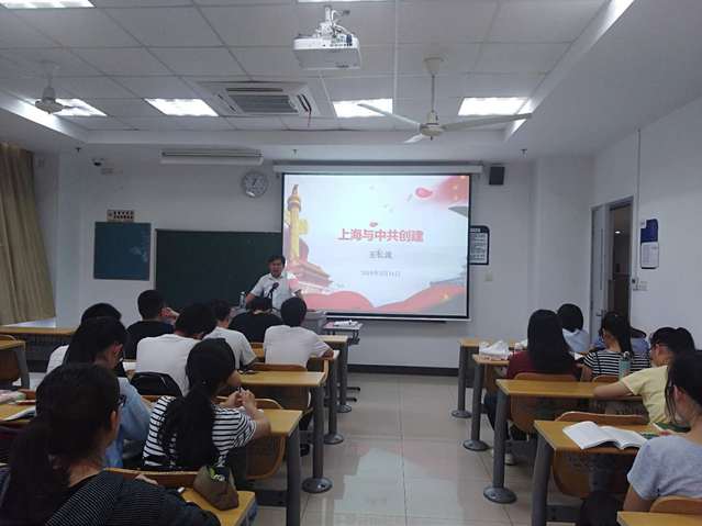 曹月柱老师首先介绍了这一专题的开设意义,旨在通过不同专题讲授为建设相关选修课打下基础。随后,王长流副主任从五个方面向学生们详细地讲解了上海与中国共产党创建,特别是上海所具有的独特区位优势、上海发达的文化文化教育出版事业、上海拥有当时中国近四分之一的工人和聚集了一大批先进的知识分子等因素成为中国共产党得以在上海诞生的重要条件,加之新文化运动、五四运动及马克思主义的广泛传播,在上海创建中国共产党的条件也日渐成熟。在共产国际的帮助下,伴随着各地共产主义小组的成立,1921年中国共产党第一次全国代表大会在上海召开,成为近现代中国历史上的开天辟地的大事。正如毛泽东所说,“自从有了中国共产党,中国革命的面貌就焕然一新了”。