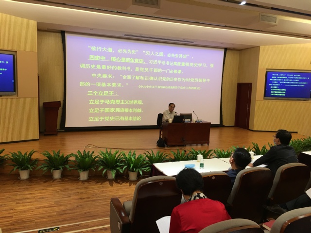 忻平教授从“四史”学习教育背景和重要意义、“四史”学习教育的重点和难点以及开展“四史”学习教育的启示等方面做了详细介绍,引用翔实的史料,讲述了伟大的中国共产党从上海开始的波澜壮阔的发展历程,让大家深切感受了历史上一批优秀的党员胸怀大局、不畏牺牲的家国情怀和感人事迹。忻教授的报告内容丰富、深入浅出、通俗易懂,给全体党员上了一堂生动的“四史”辅导课。