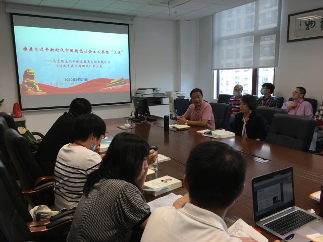 9月24日下午,马克思主义学院直属党支部开展专题学习《习近平谈治国理政》第三卷主题党日活动,支部党员认真听取了华东理工大学马克思主义学院教授、博士生导师徐国民作的“《习近平谈治国理政》第三卷融入思政课课堂教学的几点思考”专题讲座。会议由马克思主义学院直属党支部副书记、院长孙玉良主持。